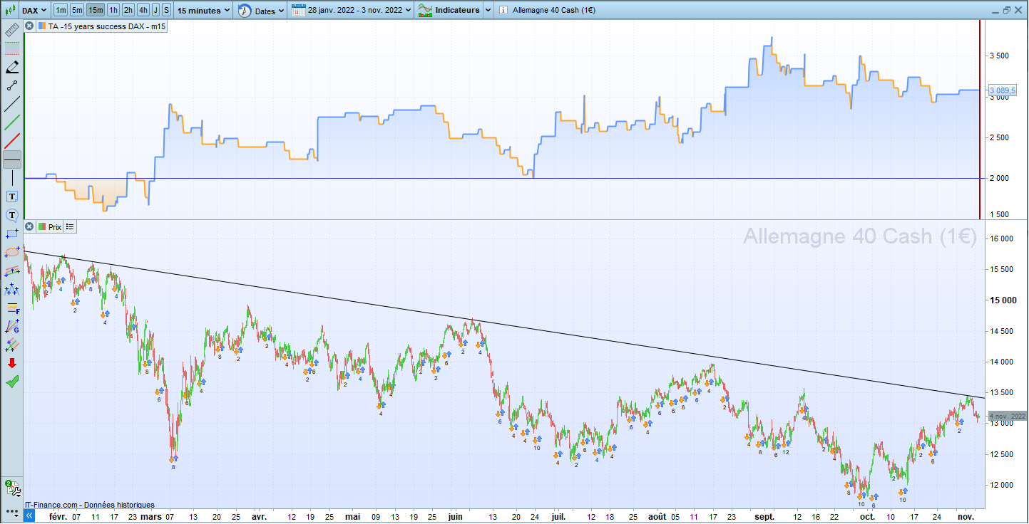 They are made with Germany40 Cash CFD 1€, timeframe 15 minutes.