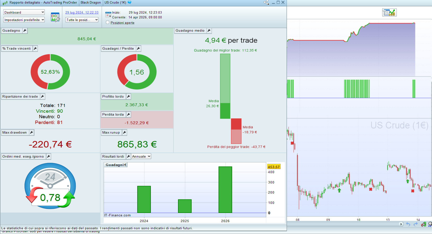 Live results with 0.3 size x trade on the US Crude(€1):