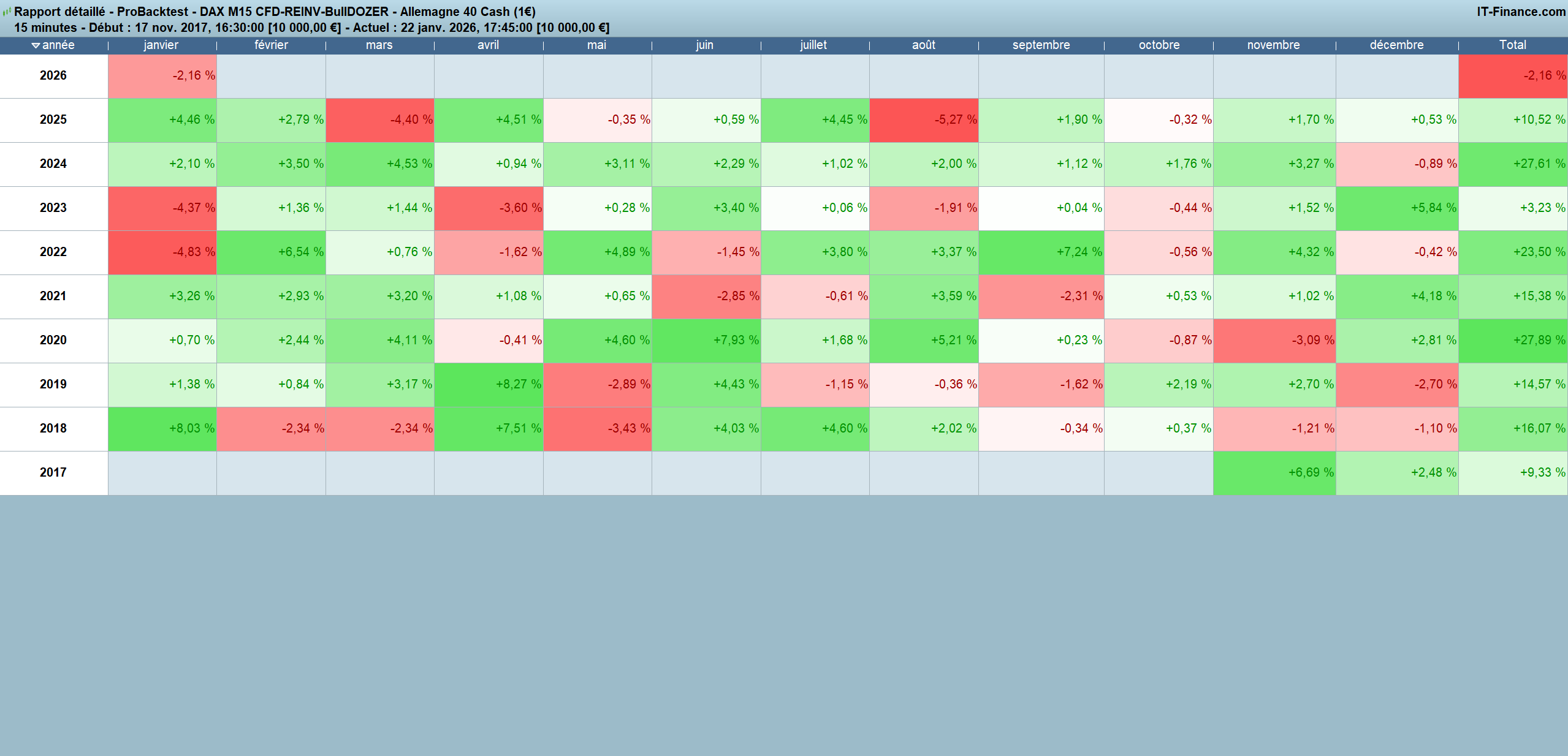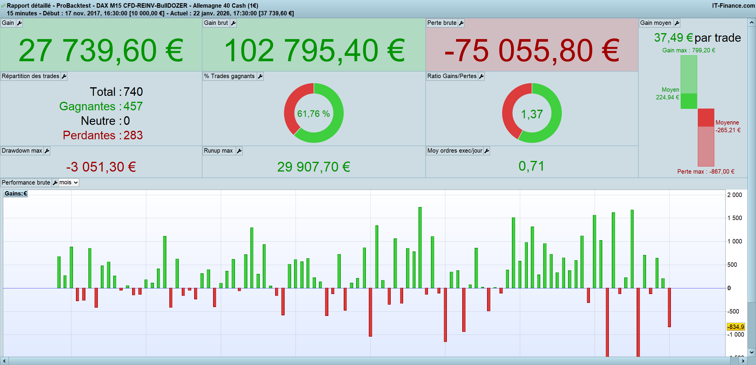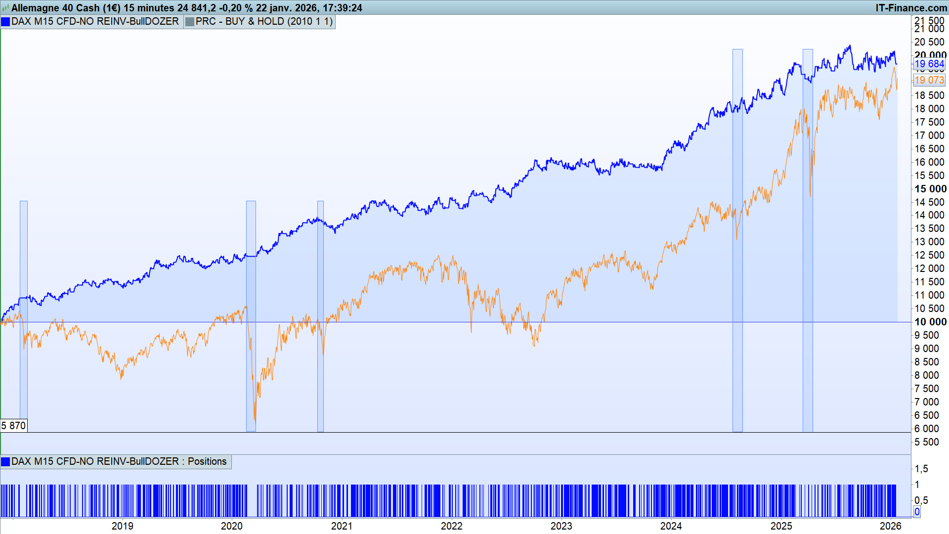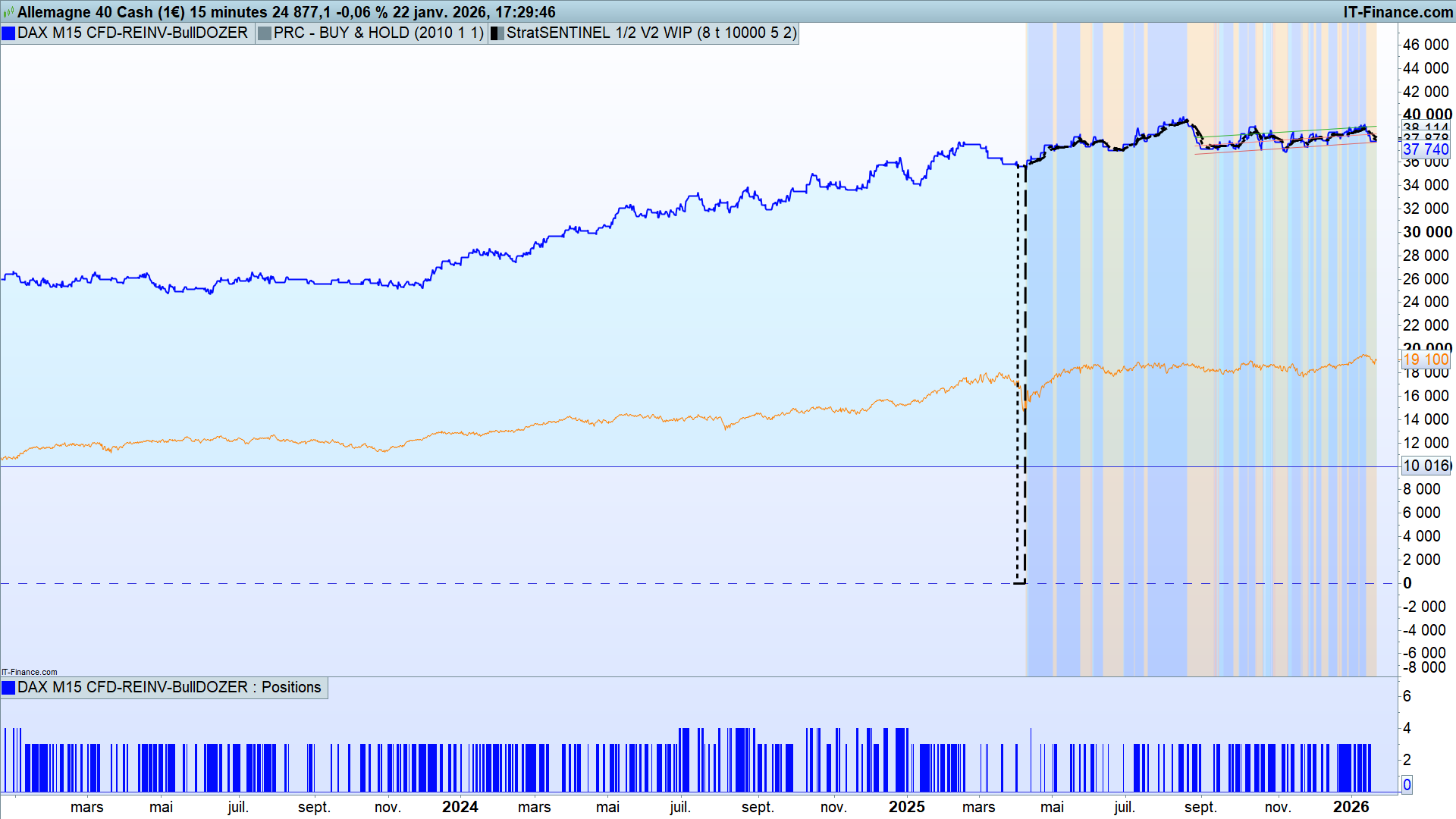 - the algo looks only for buy-long entries, to capitalize on the structural uptrend genetics of the Dax 40