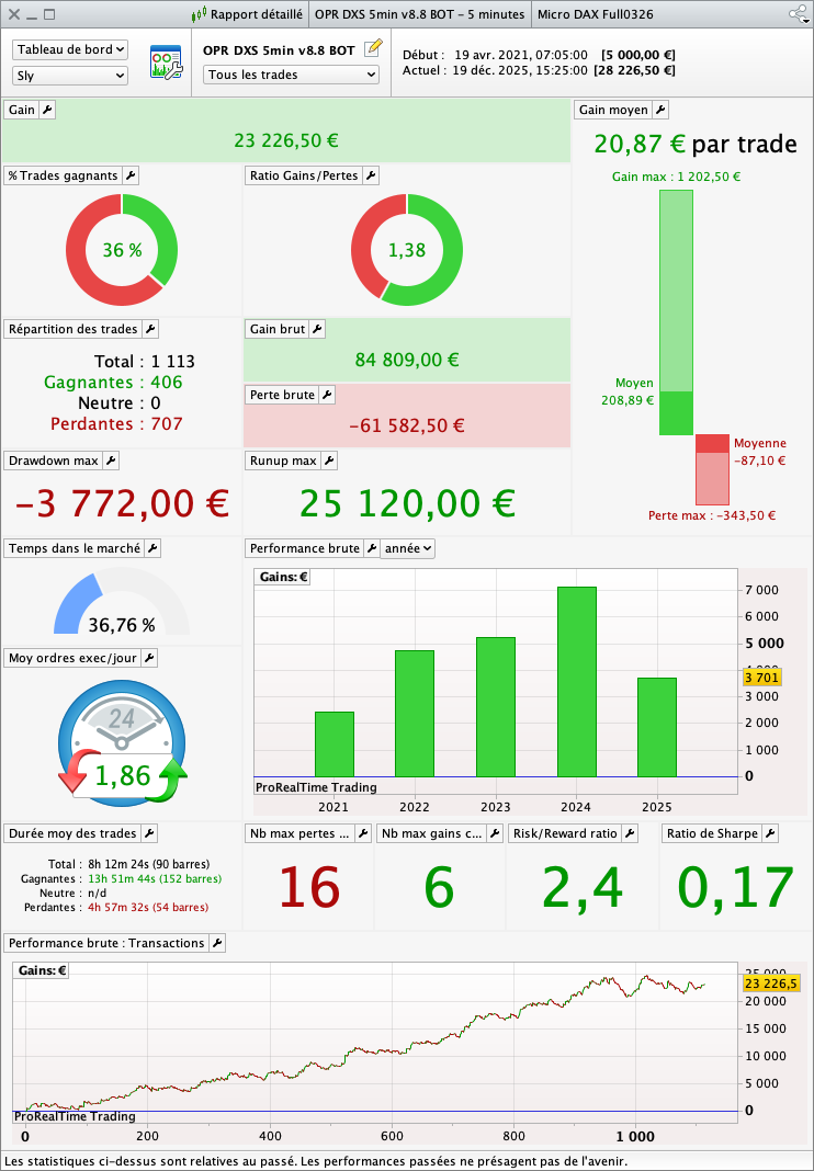 The aim of this development is therefore to obtain automated trading systems that are robust in the long term, regardless of market conditions. However, past performance is no guarantee of future results, and investing in the financial markets involves risks that may result in the total loss of capital.