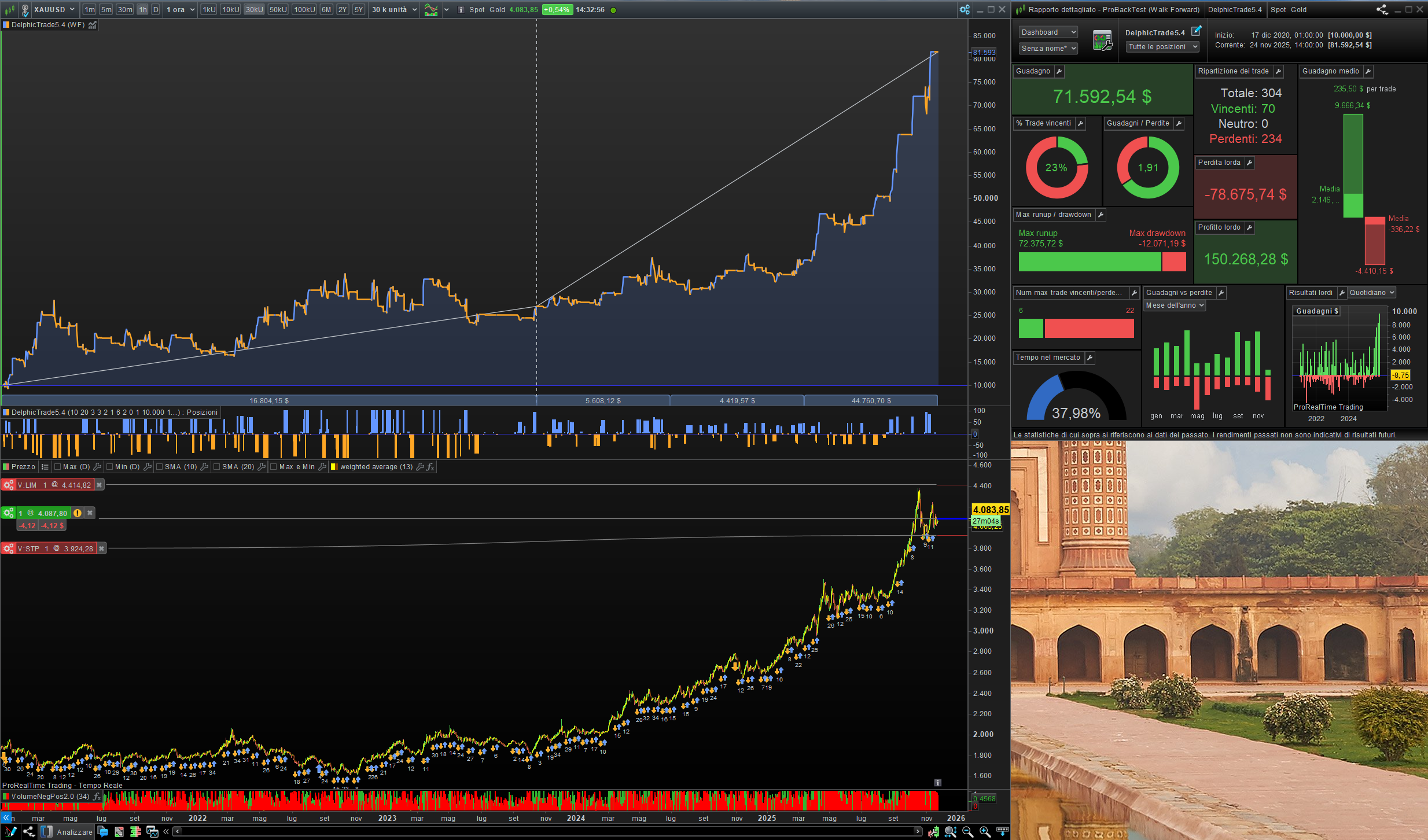 The robot works implementing the Delphic strategy that consist in a couple of mobile average that follow a predefined schema. The robot uses Take Profit , Stop Loss and an Exit strategy to prevent loss from trend inversion situations. The robot is built with the setup inside. Any changes is not recommended. You are only encouraged to change the MaxMaxLot parameters if you want to reduce risks