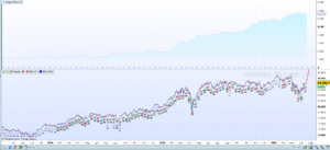 Let’s now see an overview of a backtest of the system in 3+years on the Germany 40 cash(€1) with an hypothetical capital of €1000 set with the default contract size at 0.5 on the DAX index (€1 per point) with a spread of 2 points. We note that the profit yield is really high, while maintaining a very limited drawdown.
