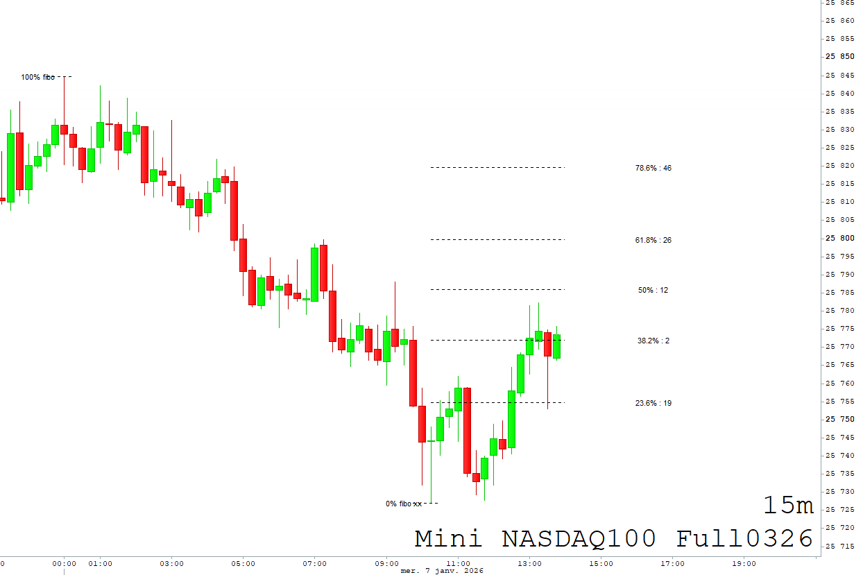 Fibonacci Retracements Pro es un indicador ProRealTime de nivel profesional que dibuja automáticamente los niveles de retroceso de Fibonacci directamente en tu gráfico en tiempo real, para que veas al instante las zonas clave de pullback sin dibujar a mano, sin suposiciones y sin saturar el gráfico.