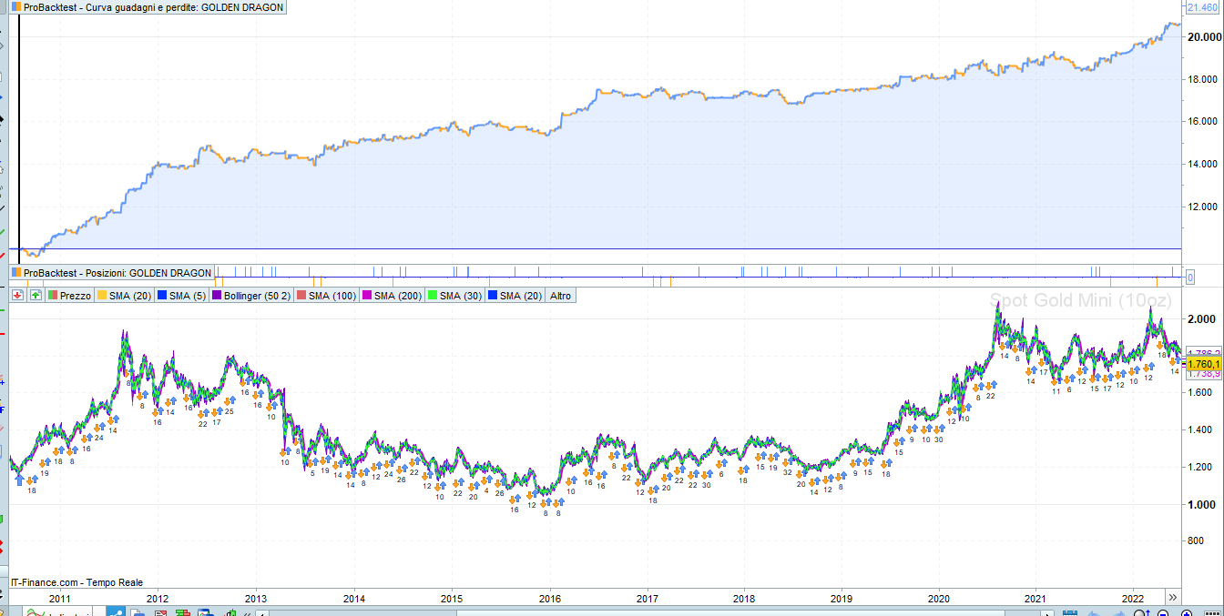 A really interesting strategy to do automatic trading on the gold asset with important results. Especially in the long term, as the tests show it is a solid system that will be able to perform well even for long periods of time. The idea of the strategy is mainly based on the price action, mainly by identifying precise breakout spots and closes the trades towards the end of the day ( flat max after 09.00 pm GMT+1 time ). Suitable operativity, designed and optimized precisely for automatic trading on the price of gold on 1H timeframe.