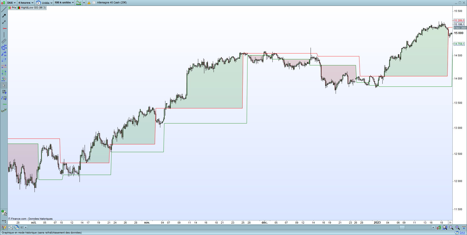 The High&Low GG indicator can be used to clearly identify rising highs and falling lows. Ideal for Dow Theory.