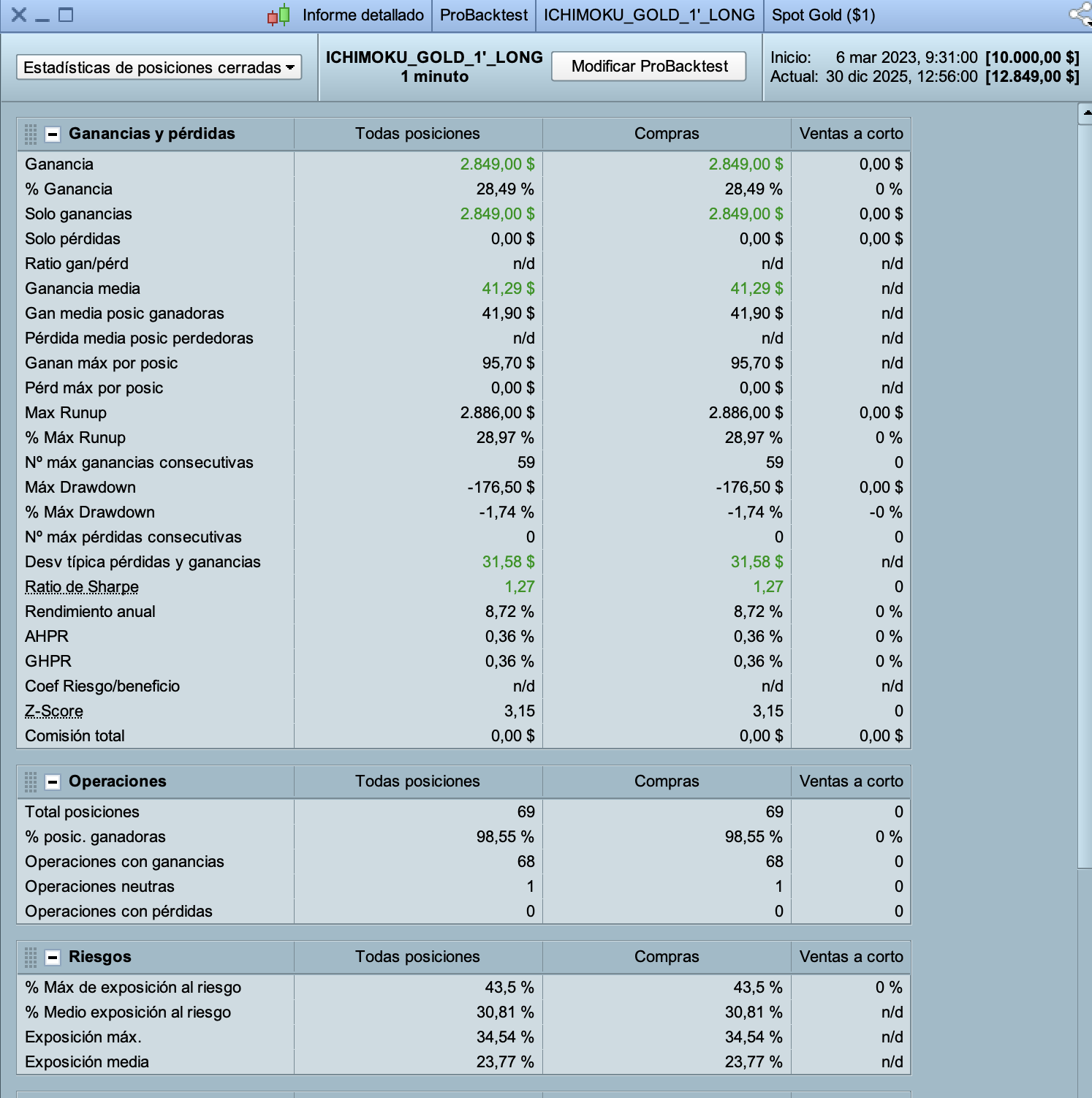 Sistema basado en la combinación de tres indicadores además de incorporar la posibilidad (opcional) de usar la gestión monetaria y tamaño de la posición.