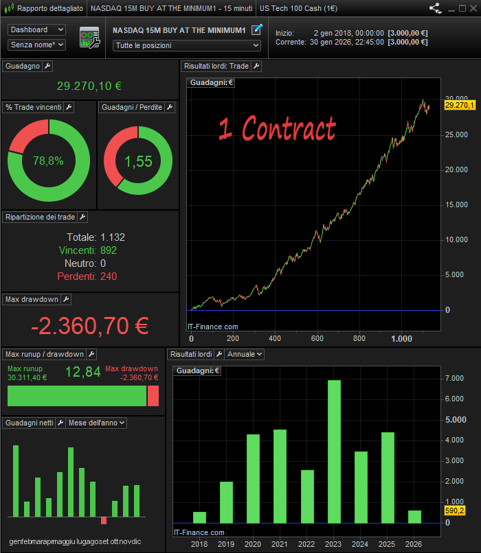 Market and time frame: The strategy can only be used on the NASDAQ index with a 15 minute time frame