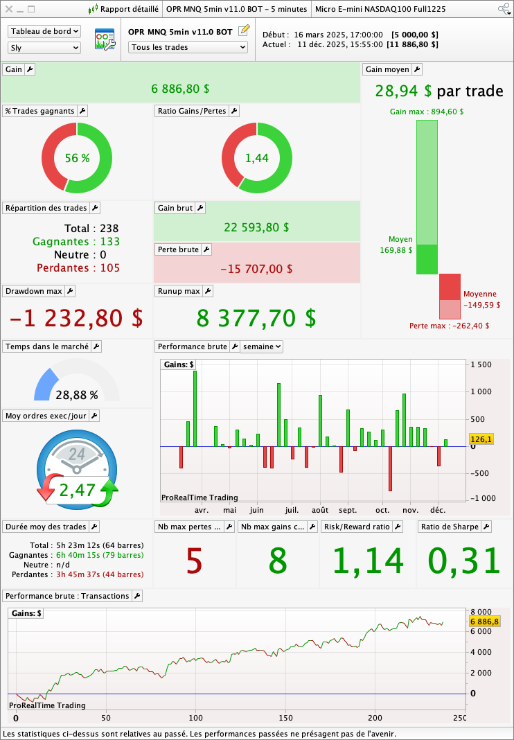 The results presented below were achieved with one contract on the Micro Nasdaq (MNQ), without reinvesting the gains made.