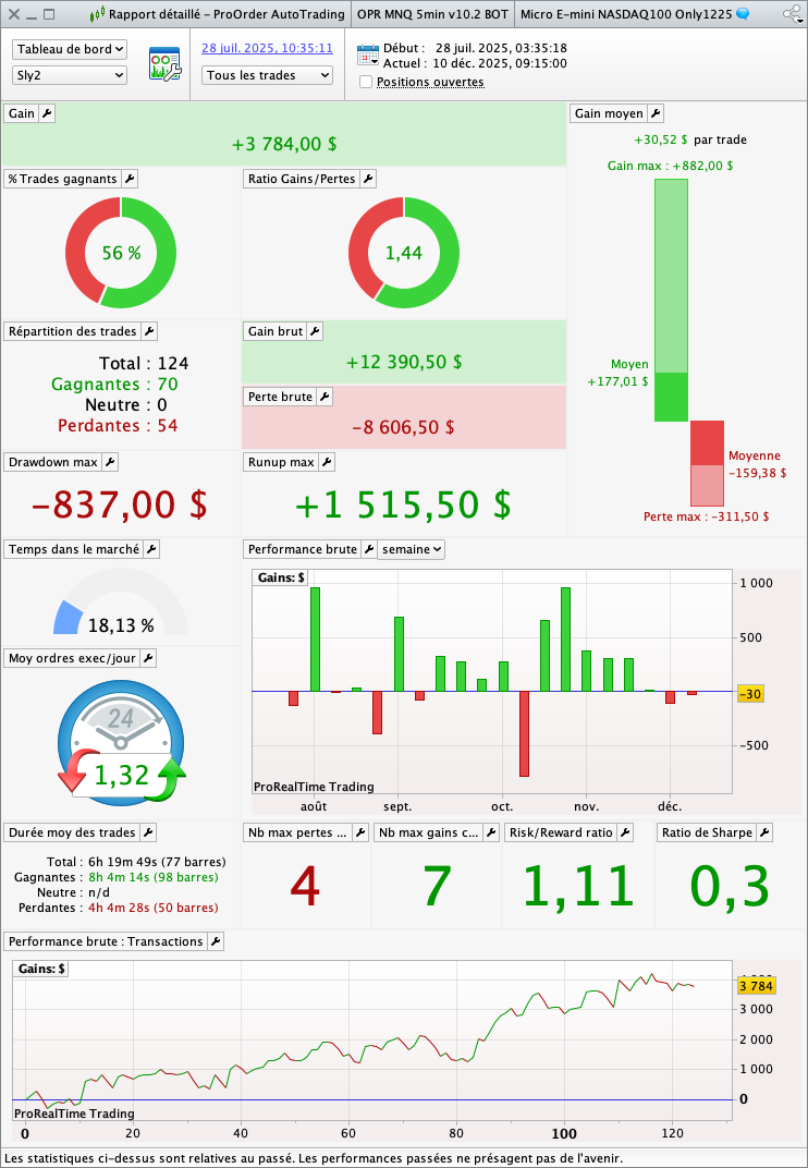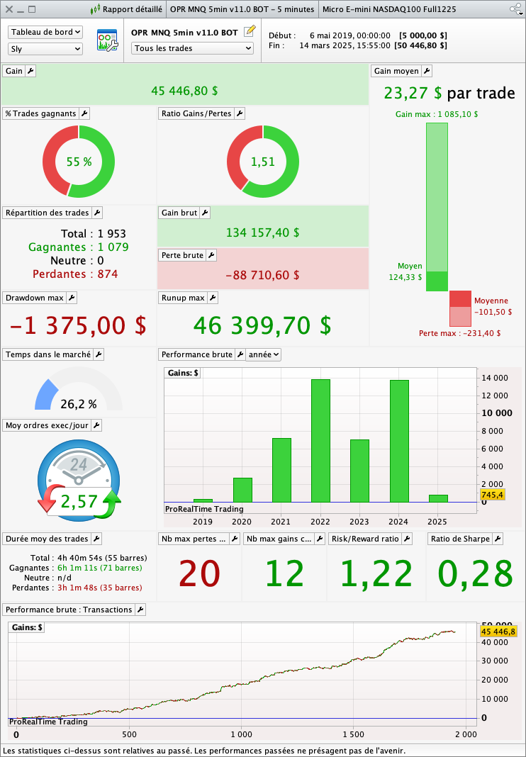 The aim of this development is therefore to obtain automated trading systems that are robust in the long term, regardless of market conditions. However, past performance is no guarantee of future results, and investing in the financial markets involves risks that may result in the total loss of capital.