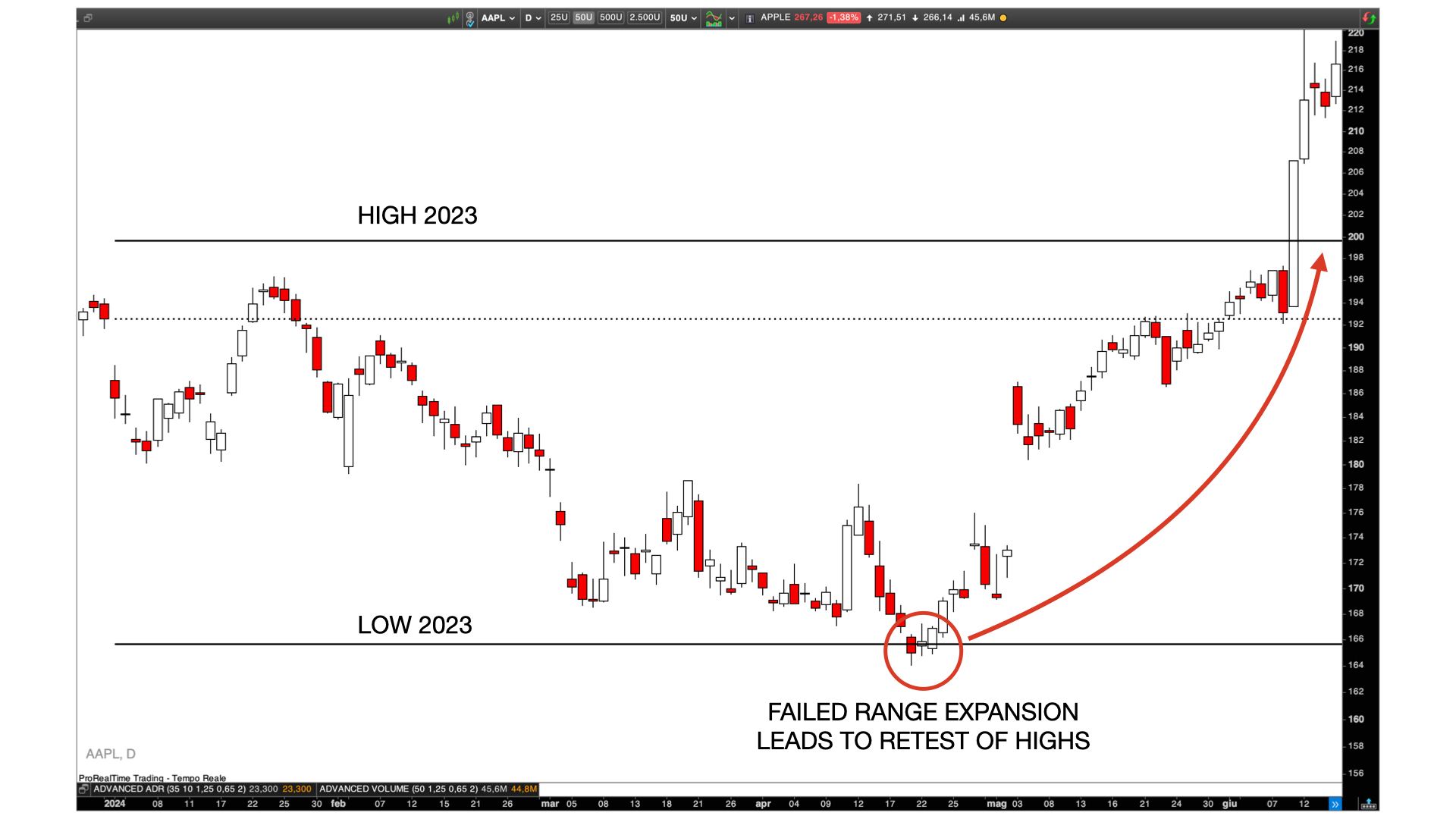 LOOKBACK (default 0) defines how many past bars are scanned to verify whether a Failed Range Expansion has already occurred. A value of 0 restricts the analysis to the current bar only, while higher values allow the screener to check if a failed breakout of highs or lows happened within the last X bars or days, depending on the Period setting. Increasing the LOOKBACK is particularly useful when searching for recent but not immediate failed expansions, helping traders identify structural failures that are still relevant but not necessarily forming on the latest candle..