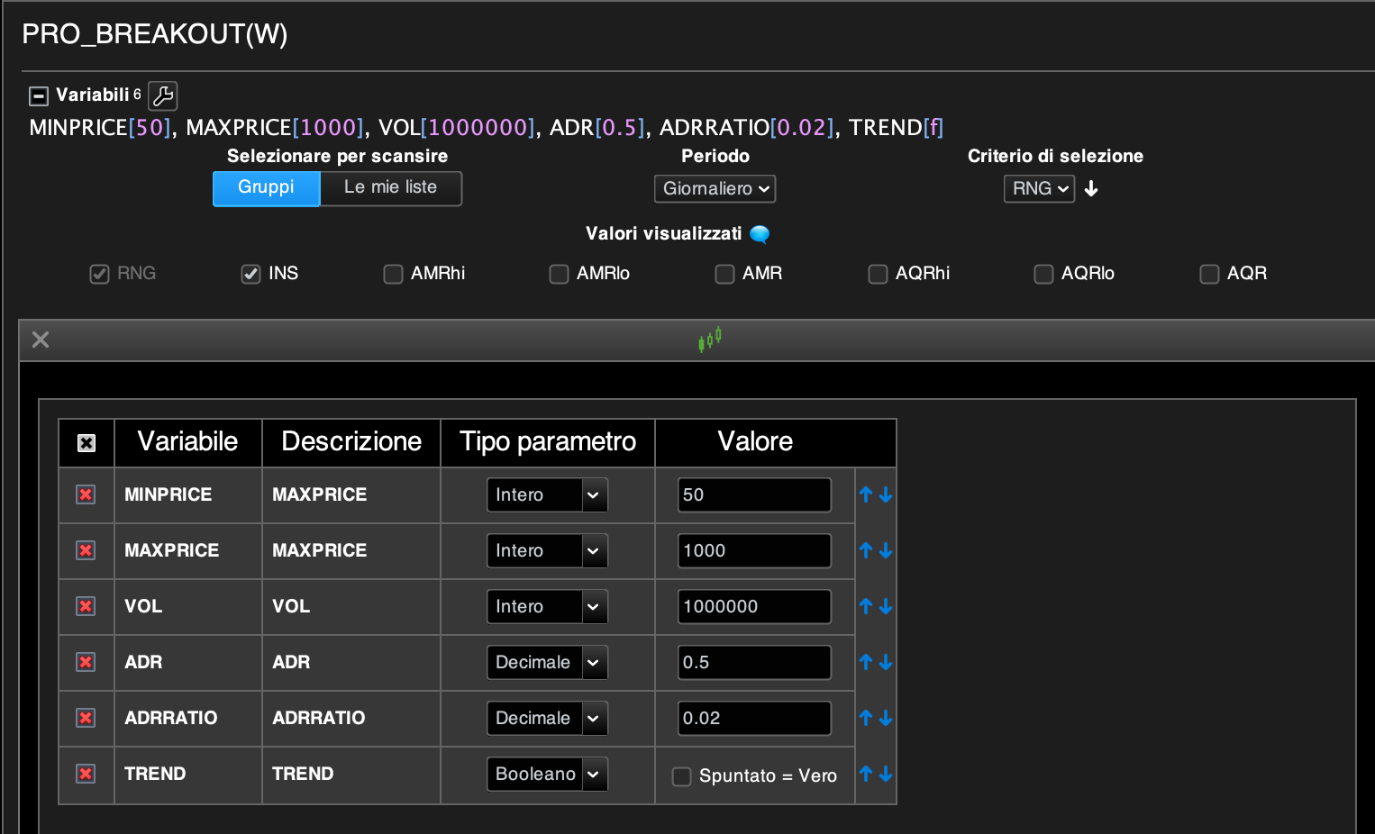 - Independently from the “INS” result, the criteria of the screener are already optimized for the best breakout setups.