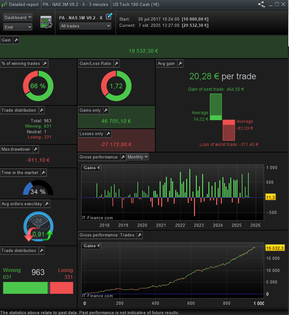 It has demonstrated impressive results over time, even during turbulent market conditions. For example, during the “tariff chaos”, this algo delivered several very strong trades. A favorite for those who want to combine technical elegance with ** stable performance**.