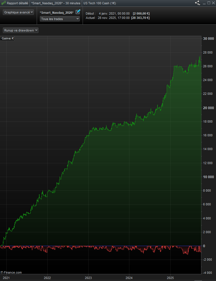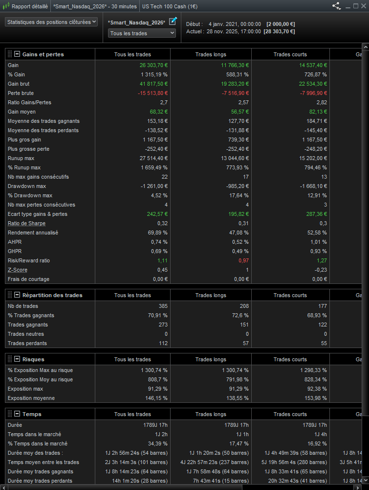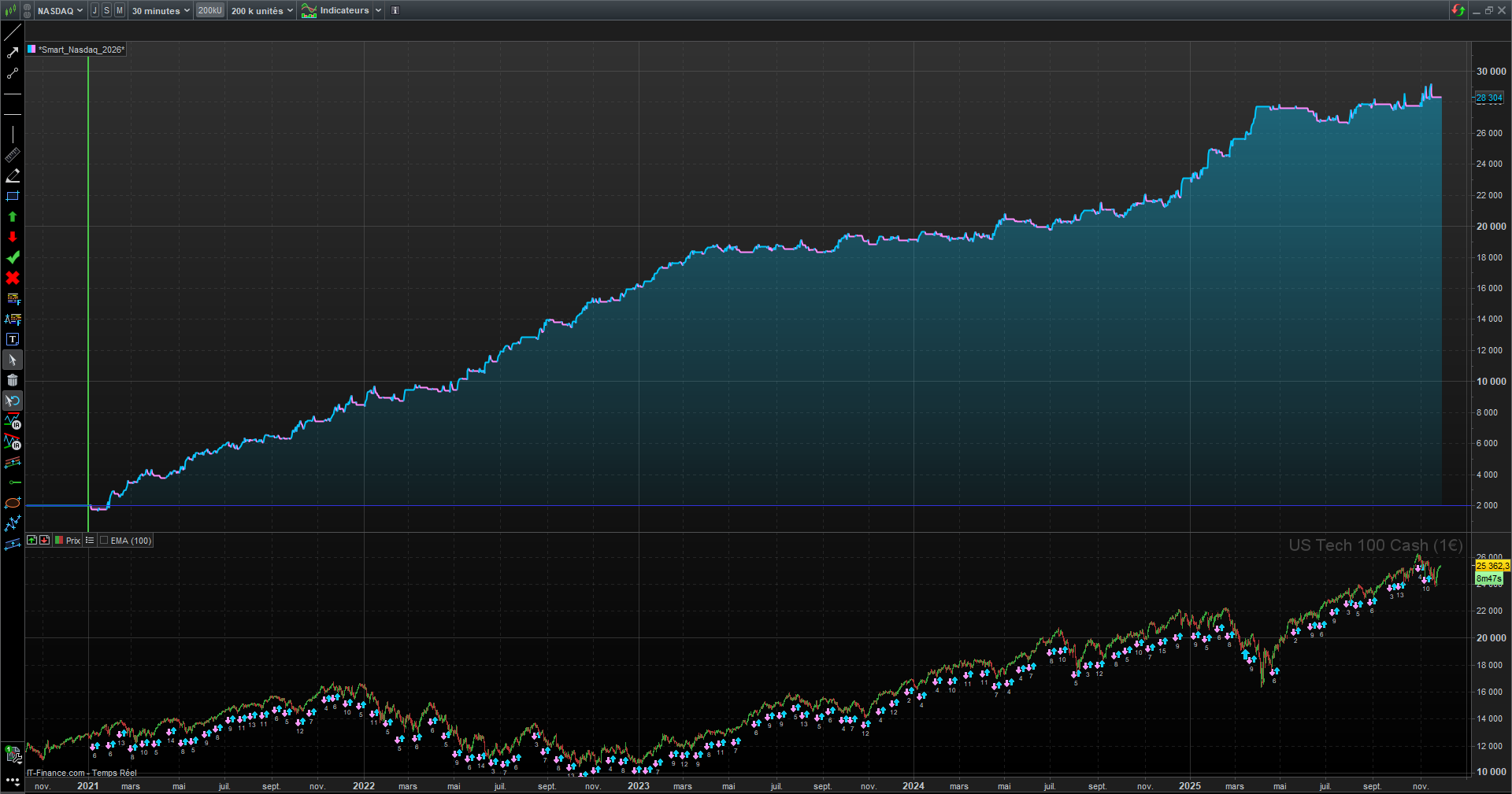 Smart_Bot strategy works on 30 minute timeframe on US Tech 100 Cash.