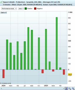 Close position : Limit, Dynamic stop updated every 5 min.