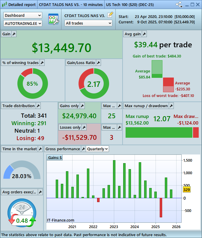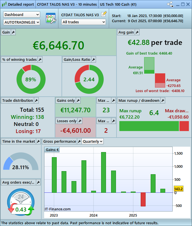 I started using Talos NAS since 06/22/2021, it is now 08/26/2021 and already 1150 profit points. This algorithm is very promising with a very controlled drawdown.
