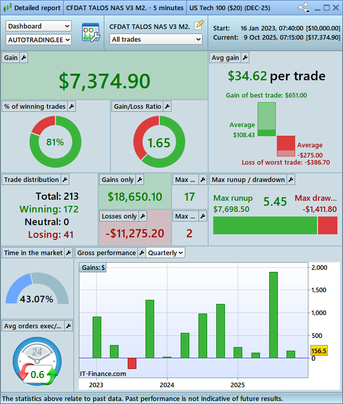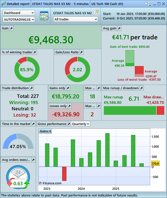 TALOS NAS V2.2 debut. Showing an instance in real started with 0.5 contracts and low Money Management (means >2.500⏠per contract in a bit more than 2 months)
