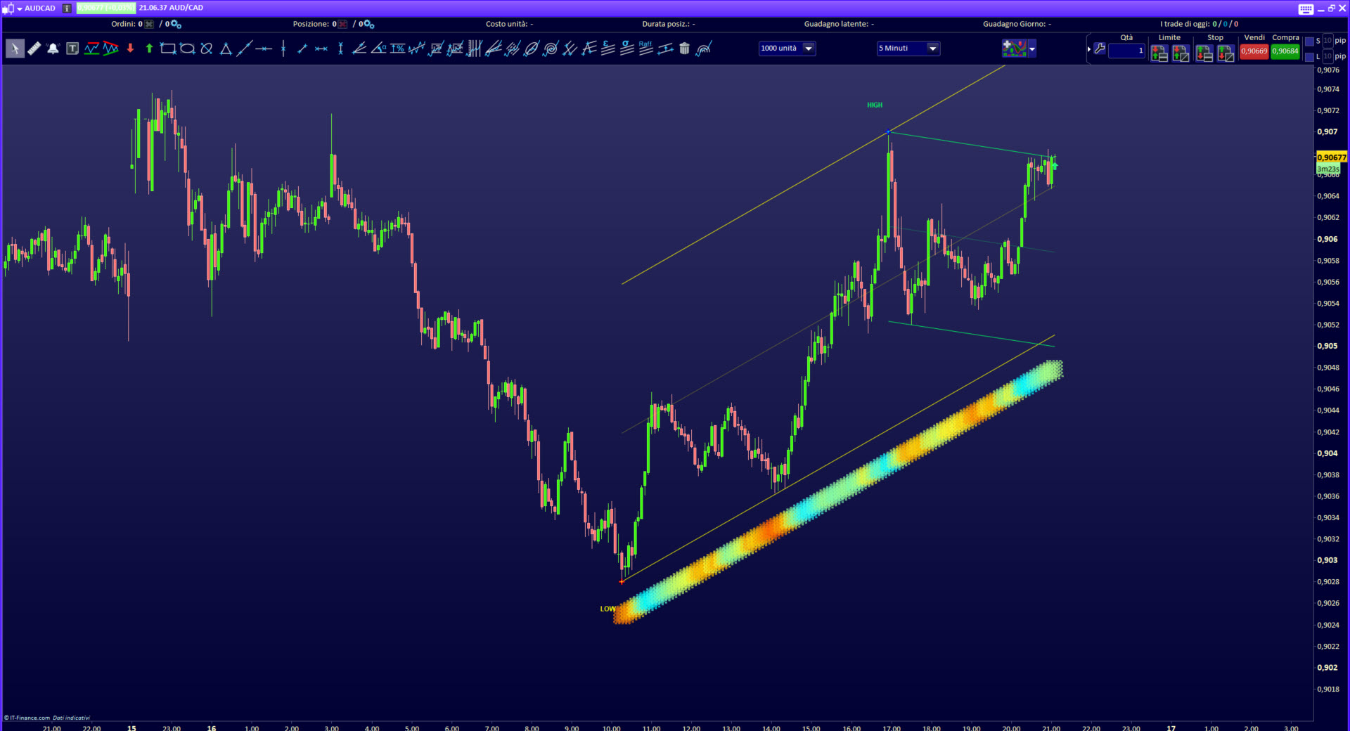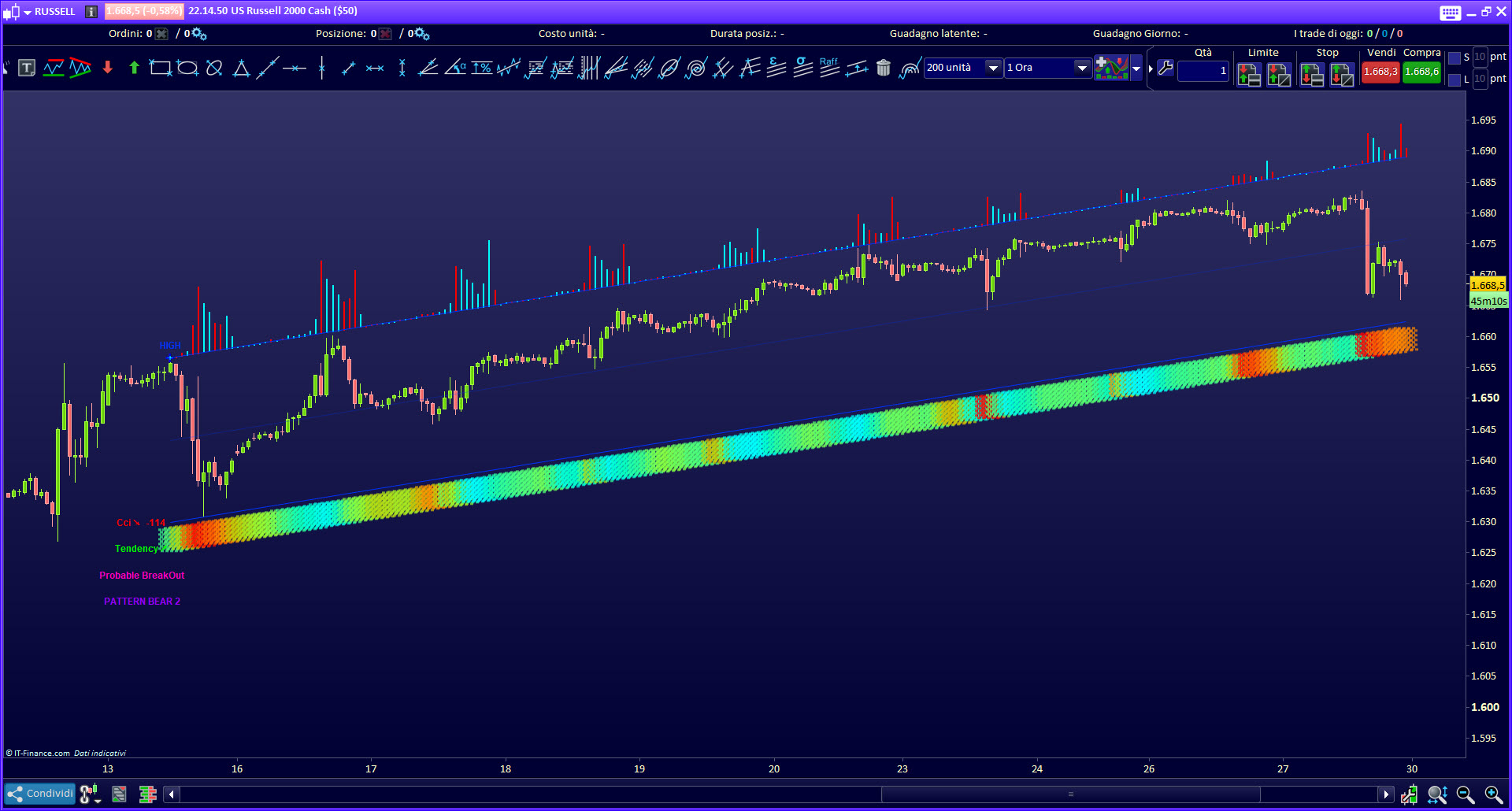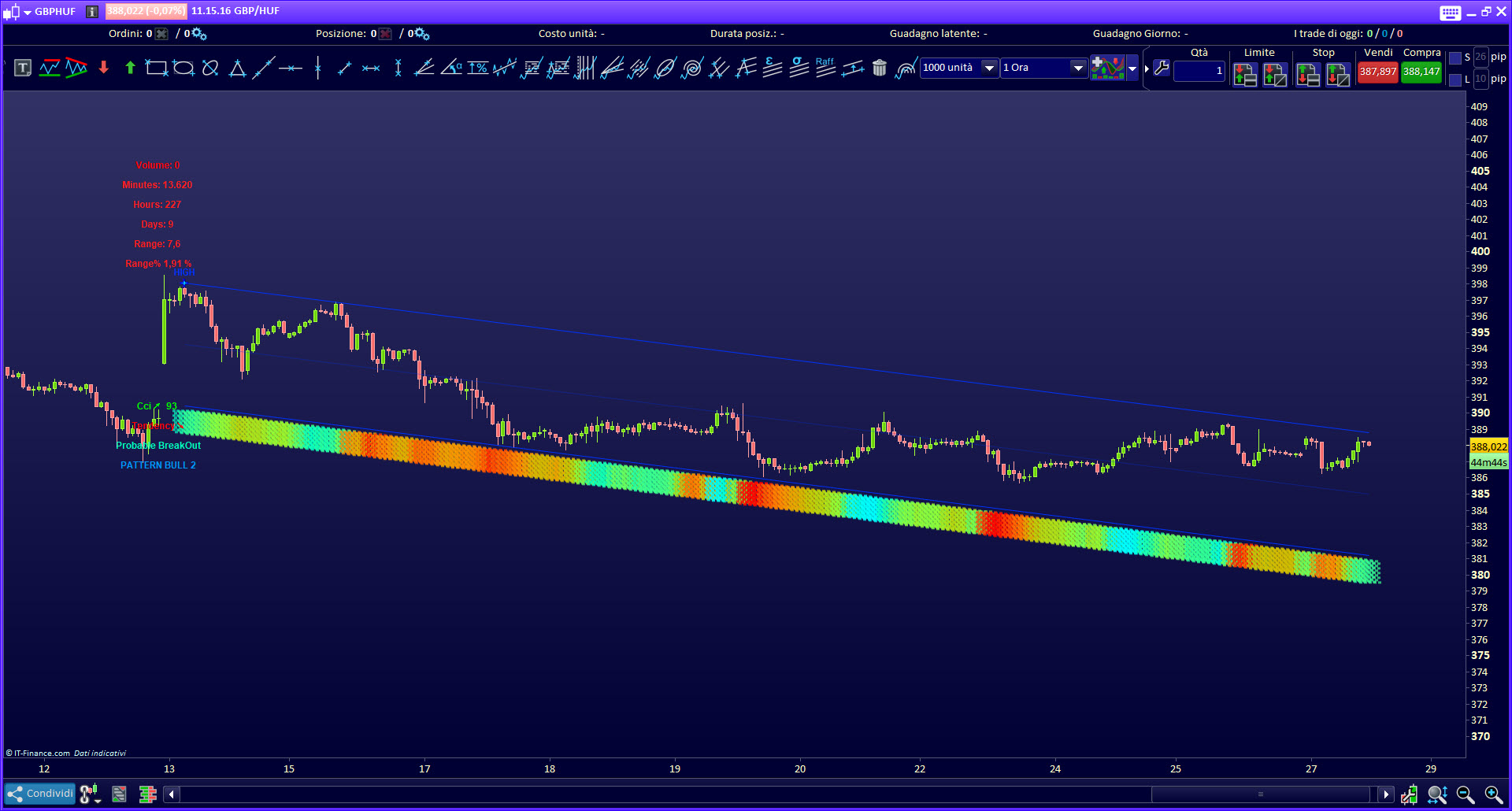 Select multiple markets simultaneously, select the desired timeframe, and quickly identify the instruments (shares, stocks, forex pairs, etc.) where a possible rebound, or a possible break out is going to happen, or where a break out is occurring.