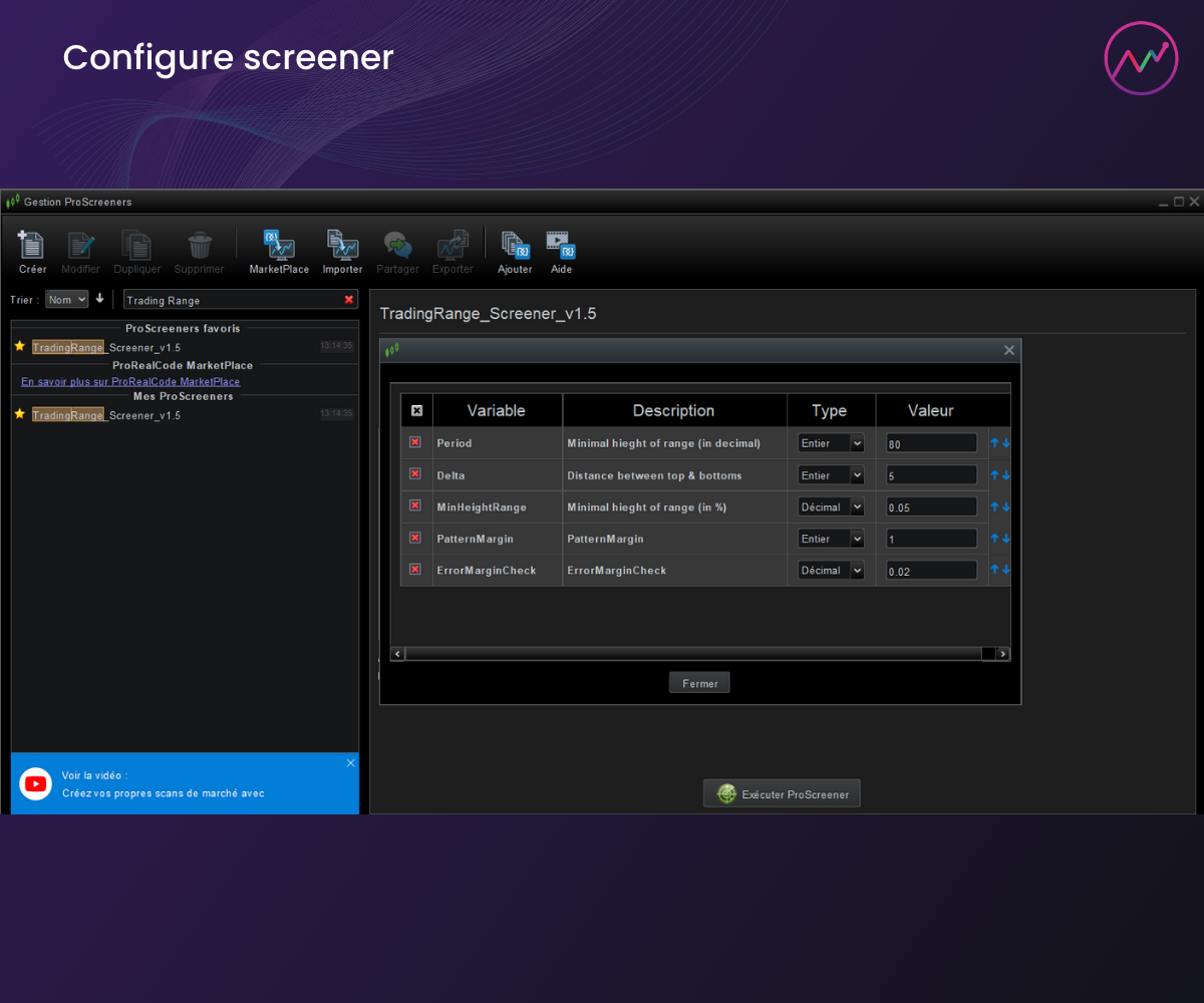 - Screener: Run the Screener to quickly scan the market for assets that meet your predefined range criteria. Identify the best candidates for range-bound trading in seconds.