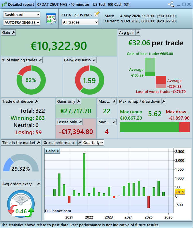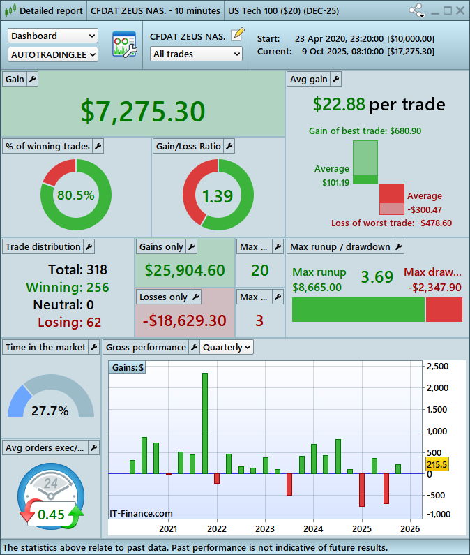 Take a look at our complete portfolio. Stable and reliable systems for all kinds of market circumstances. You can backtest and verify the latest results by yourself using our free and public demo: https://cfdautotrading.com/demo